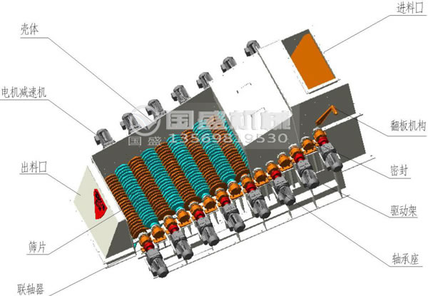 ●合理的動力配置和合理的篩面結構,使篩機內物料負荷均勻分配,保證滾軸篩運轉平穩。